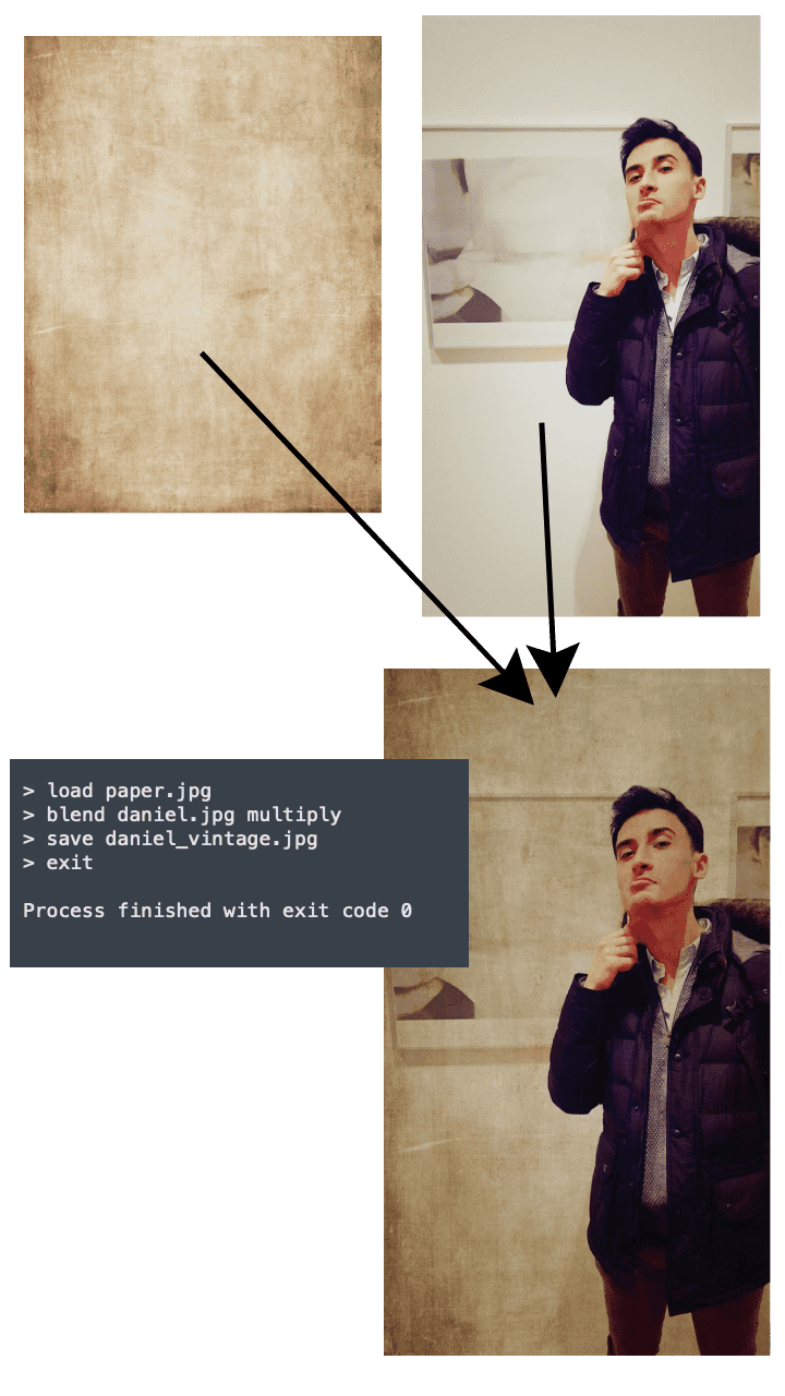 This is a command-line image editor, which can transform pictures in various ways. You can crop, resize, apply filters and effects, and combine multiple images together.