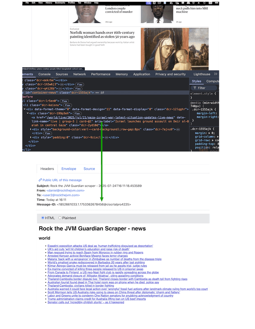 We’ll write different scrapers for different sites (including Rock the JVM!), and by the end of this project we’ll be able to extract news headlines from a popular site and send them to you over email, instead of endless doom-scrolling.